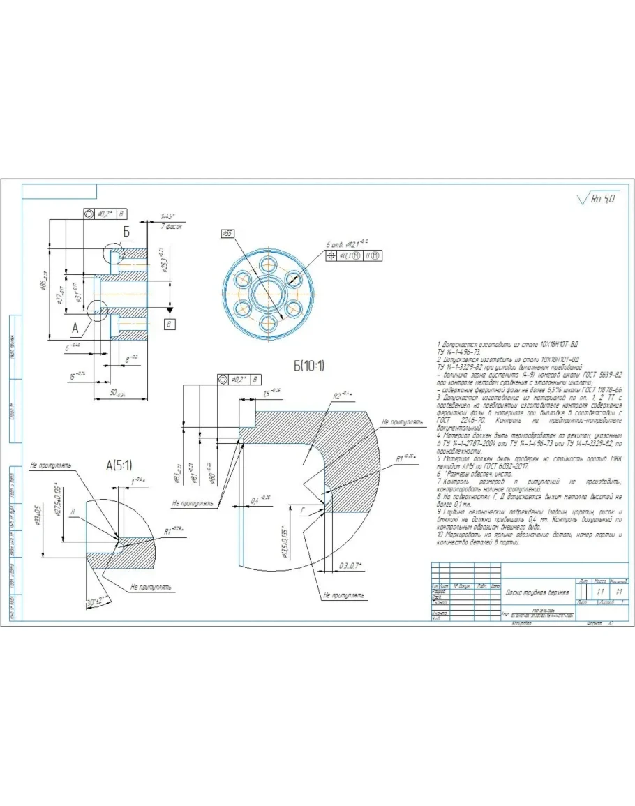 Рабочий чертеж и 3д модель детали доска трубная верхняя в компасе
