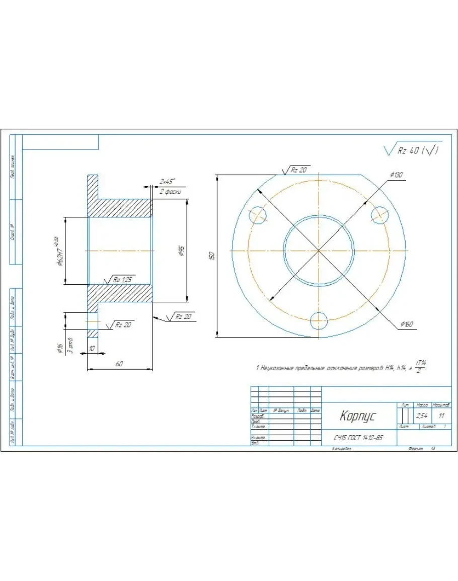 Рабочий чертеж и 3д-модель детали корпус в программе компас