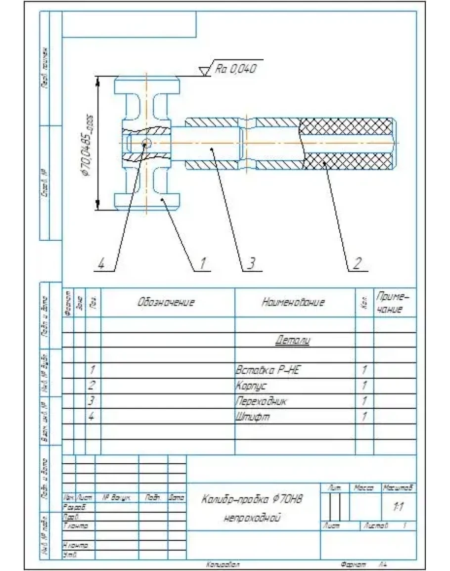 Чертеж калибр-пробка 70H8 в программе Компас 3D