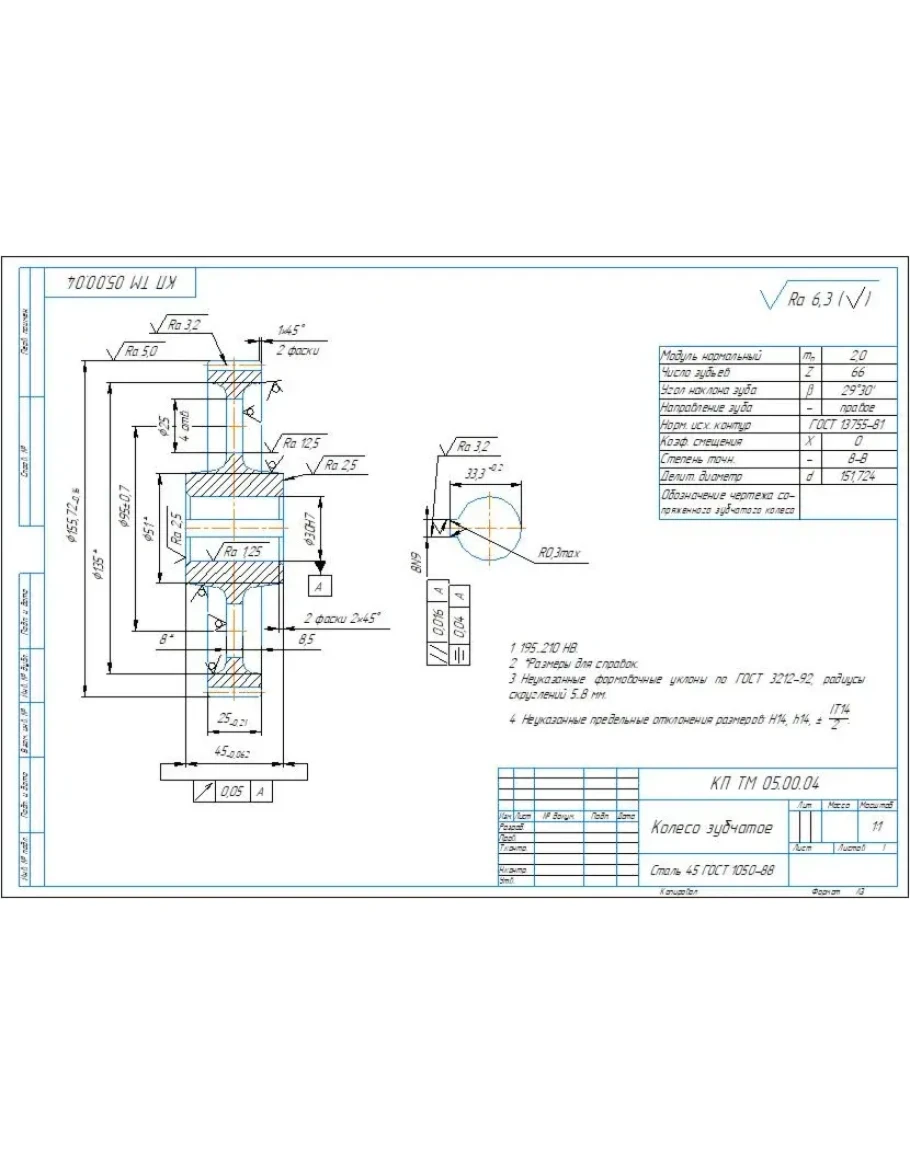 Чертеж колесо зубчатое косозубое m2 z66 в компасе