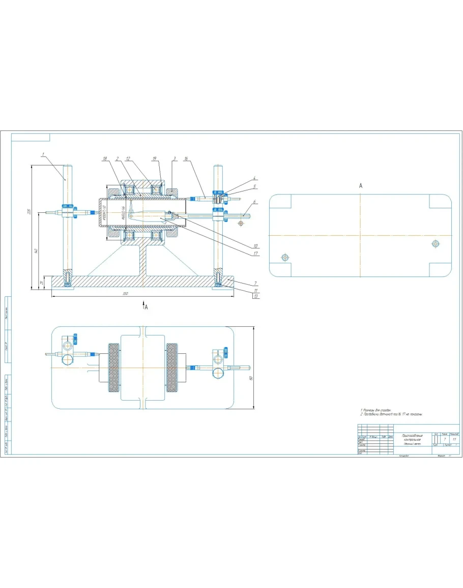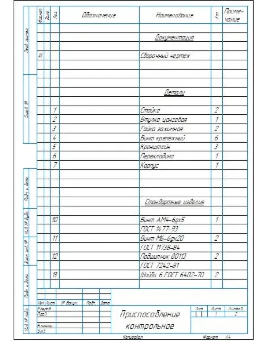 Сборочный чертеж и спецификация для контрольно-измерительного приспособления (КИП) для контроля радиального и торцового биения в детали стакан. Также приложен рабочий чертеж детали стакан. Чертежи и спецификация выполнены в компасе