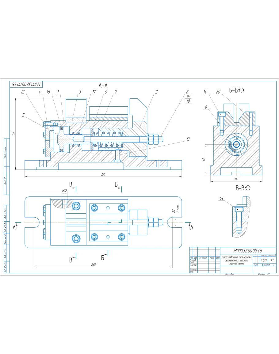 Чертеж МЧ00.32.00.00 приспособление для нарезки шпонок