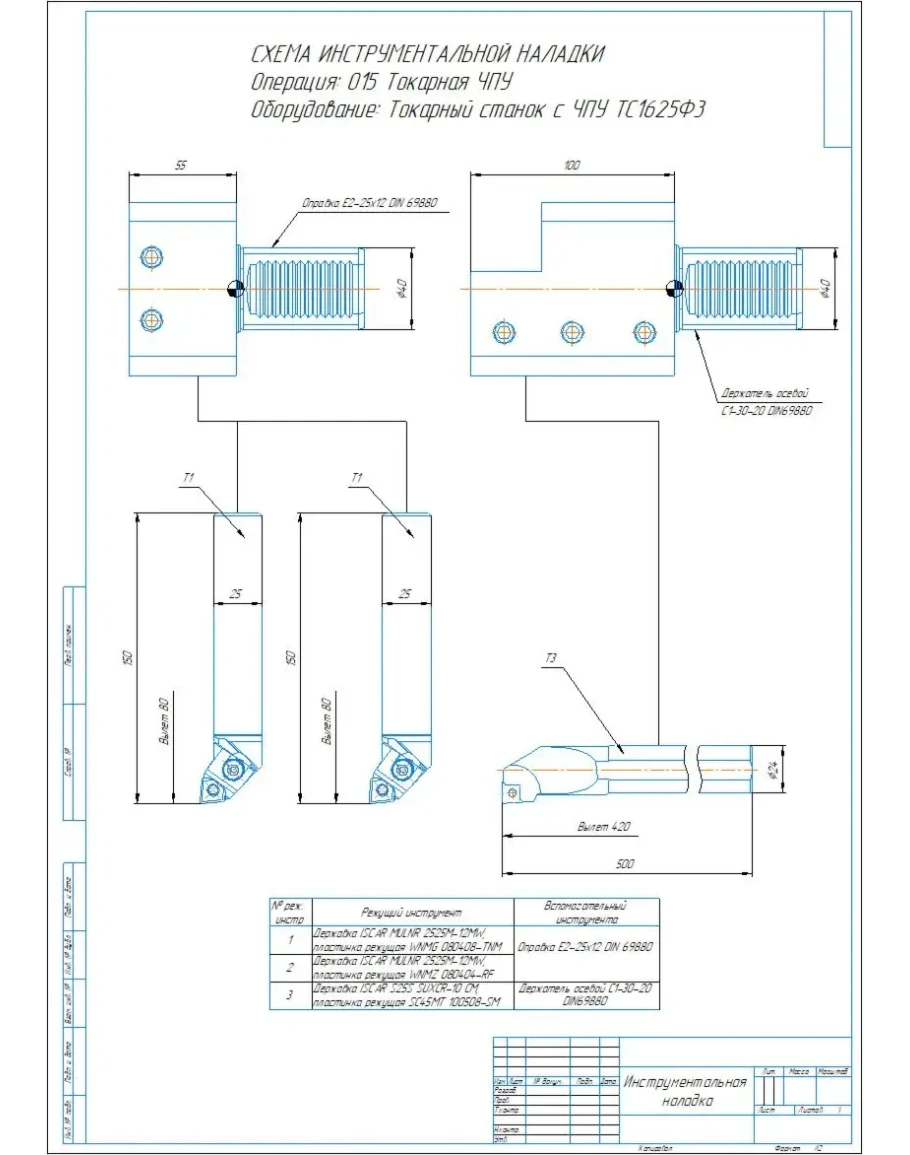 Чертеж наладка токарная, наладка расточная в компасе