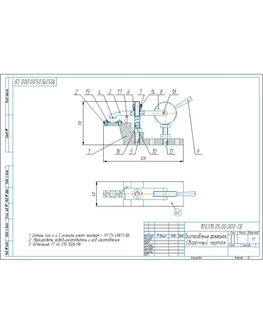 Чертеж приспособления фрезерного эксцентриковый зажим