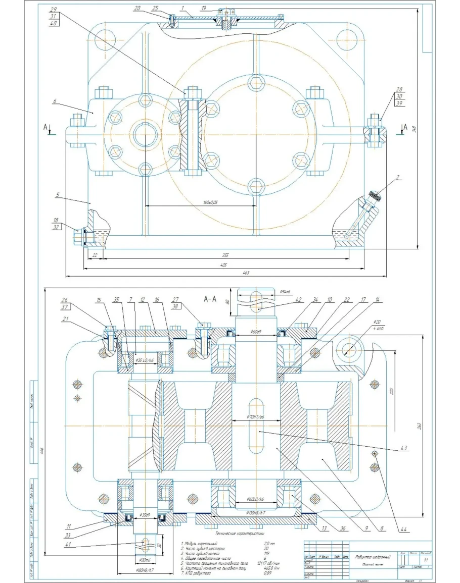 Чертеж редуктор шевронный одноступенчатый m2, a160