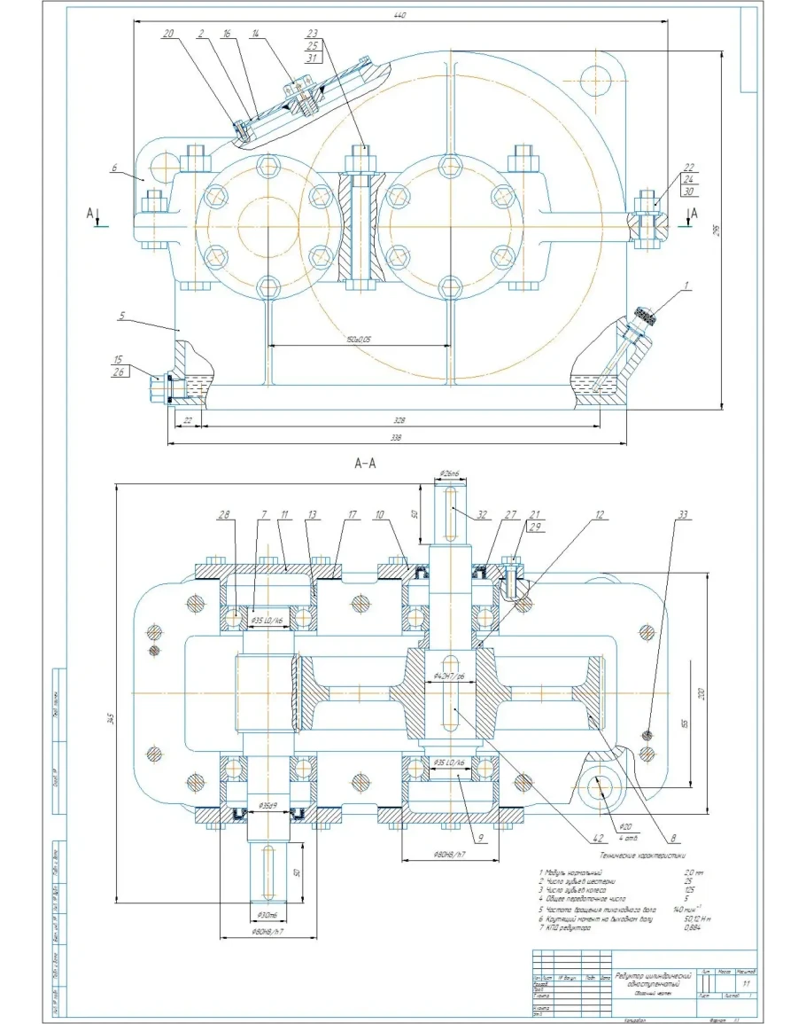 Чертеж редуктор цилиндрический одноступенчатый a150