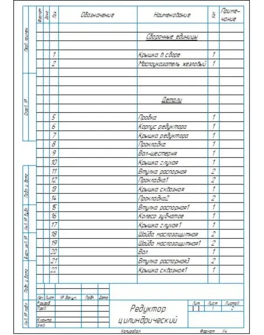 Чертеж редуктор цилиндрический одноступенчатый в компас