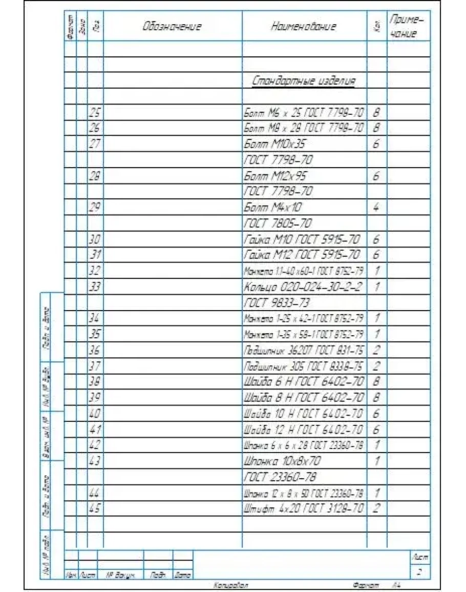 Сборочный чертеж и спецификация редуктора цилиндрического одноступенчатого с параметрами: модуль m=2 мм, межосевое расстояние a=125 мм, передаточное число u=4. Чертеж и спецификация выполнены в компасе.