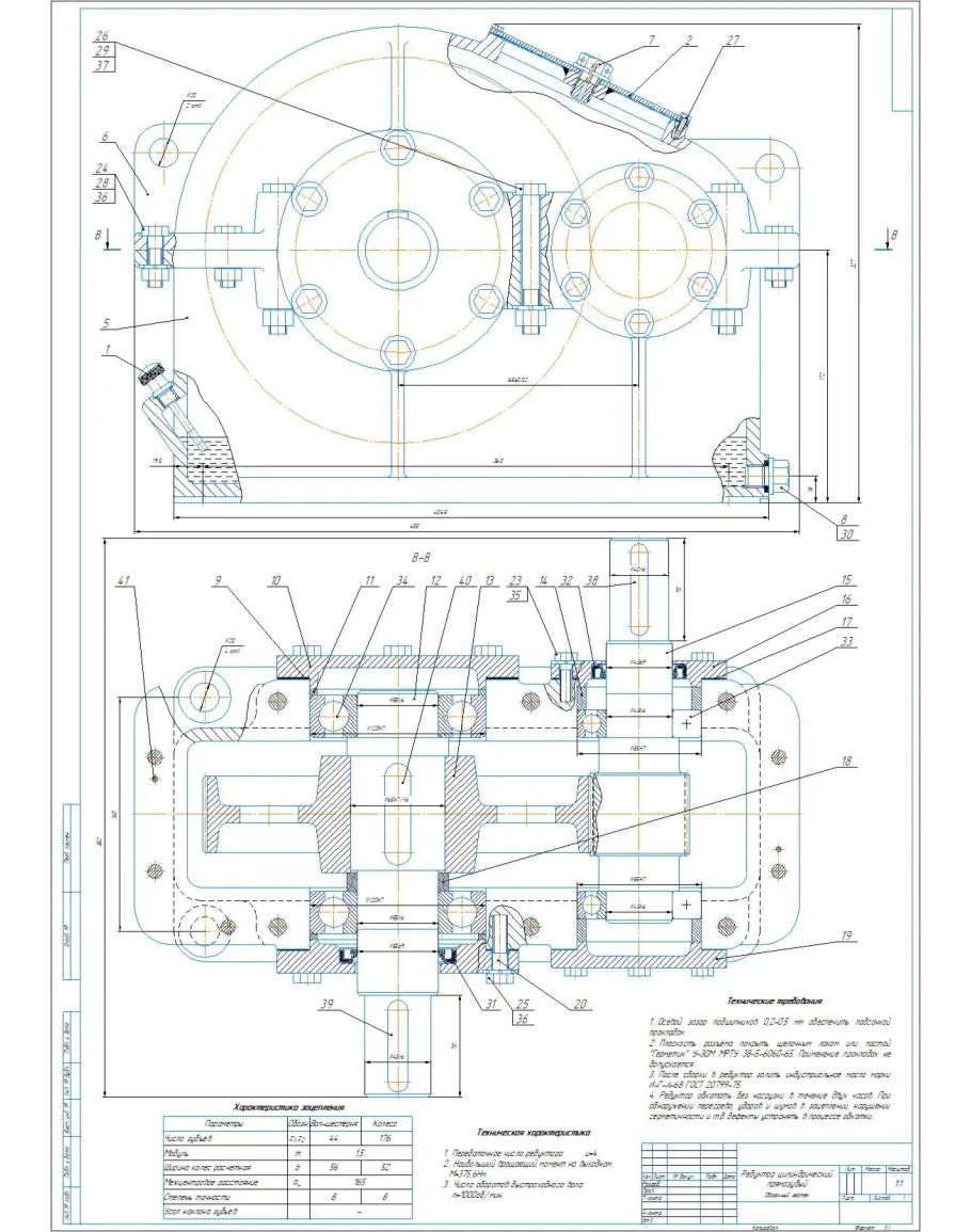 Чертеж редуктор зубчатый цилиндрический одноступенчатый