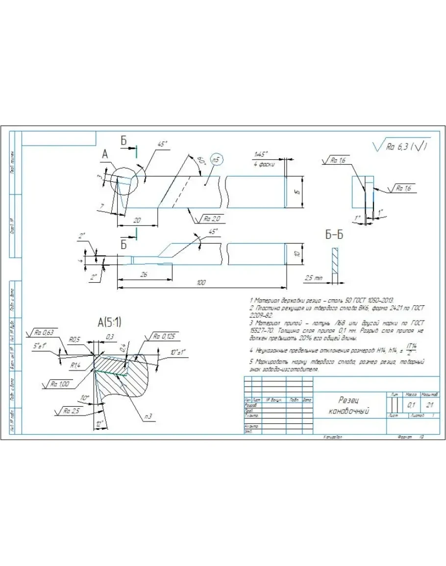 Чертеж токарного канавочного резца для точения канавок шириной 4 мм в программе компас