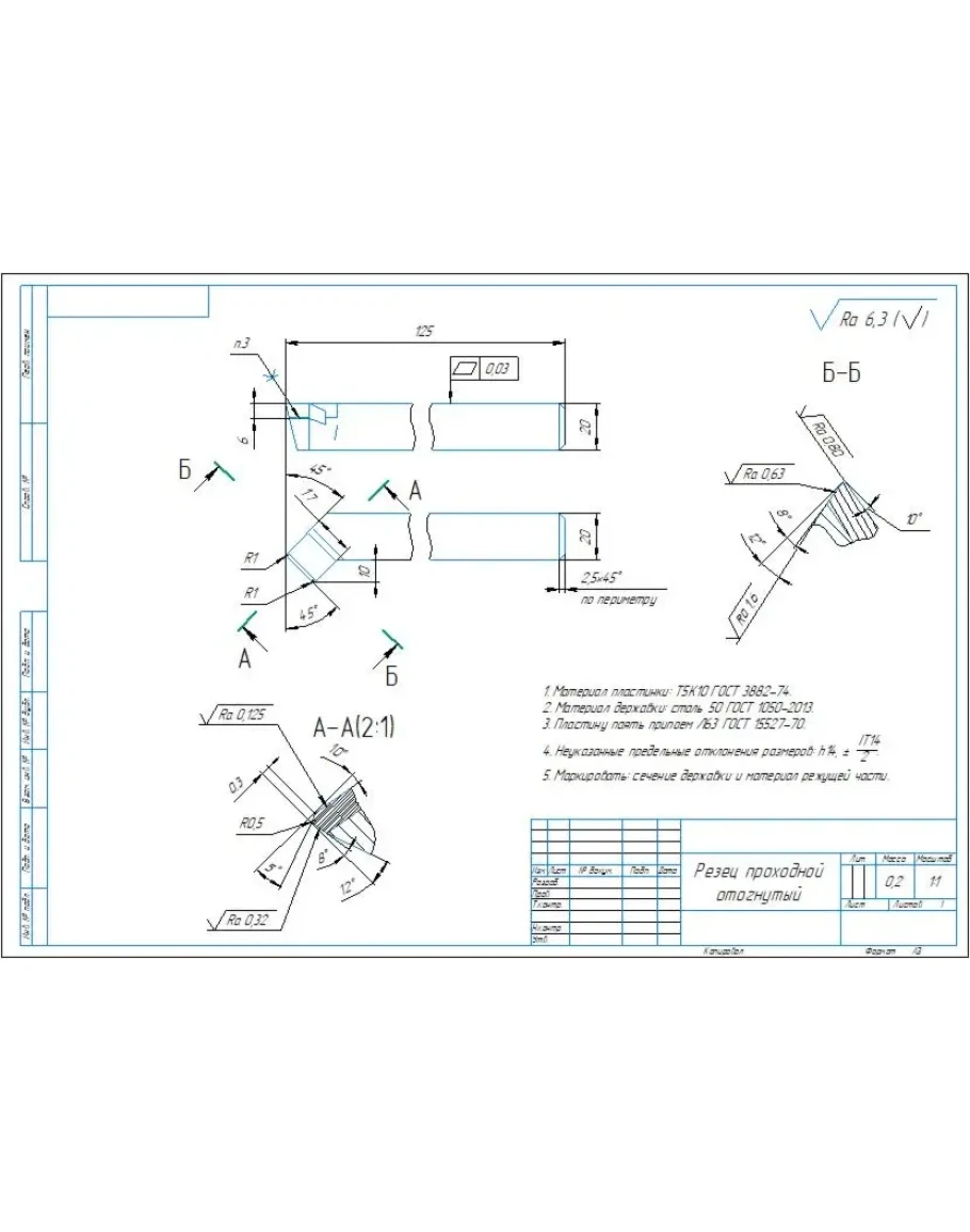 Чертеж резец проходной отогнутый с напайной пластинкой