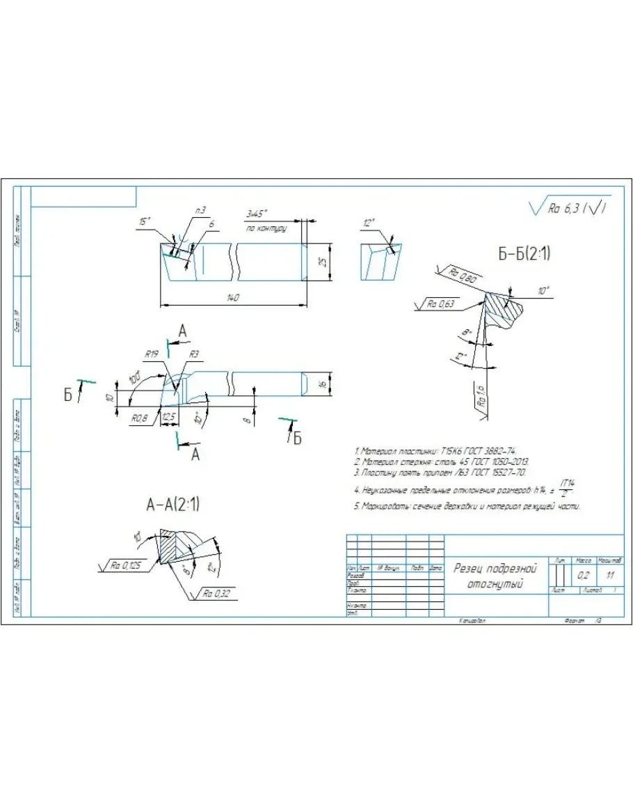 Чертеж токарного подрезного отогнутого резца в программе компас