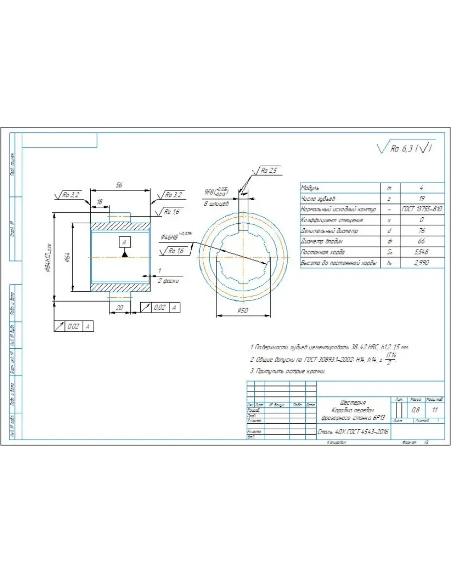 Чертеж шестерня коробки передач станка 6Р13 m4 z19