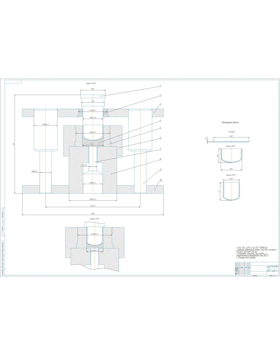 Сборочный чертеж штампа для холодной листовой штамповки детали стаканчик в программе компас