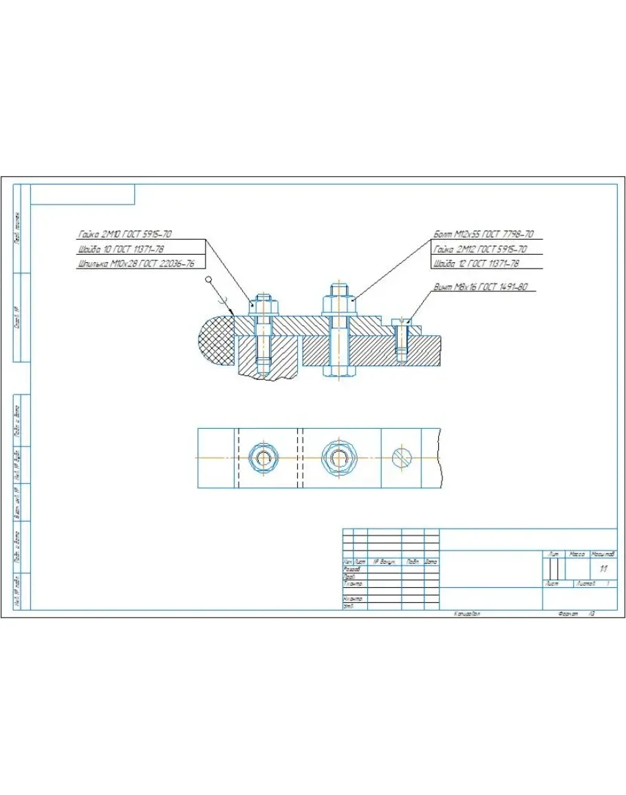 Чертеж соединение болтом М12, шпилькой М10, винтом М8