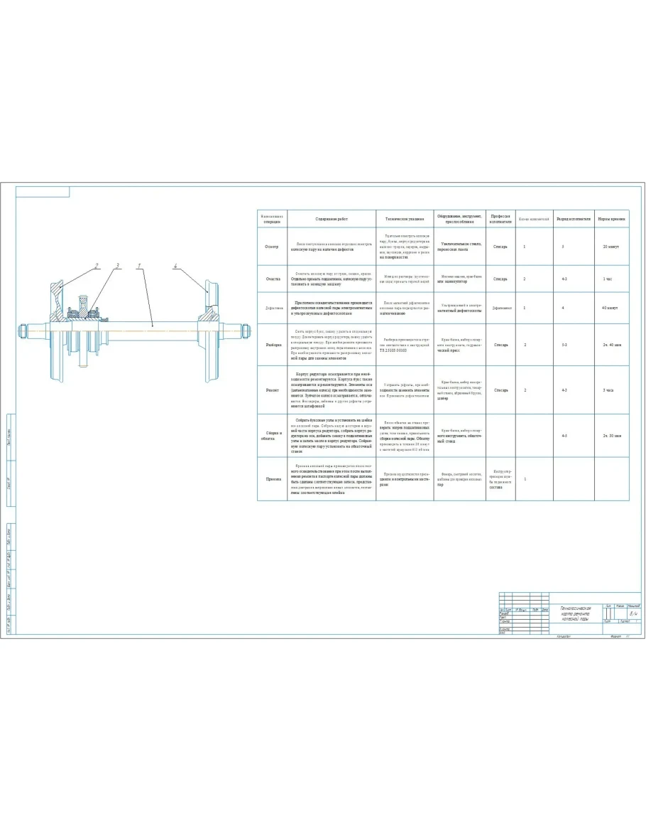 Технологическая карта ремонта колесной пары в виде чертежа на формате А1 в программе Компас 3D