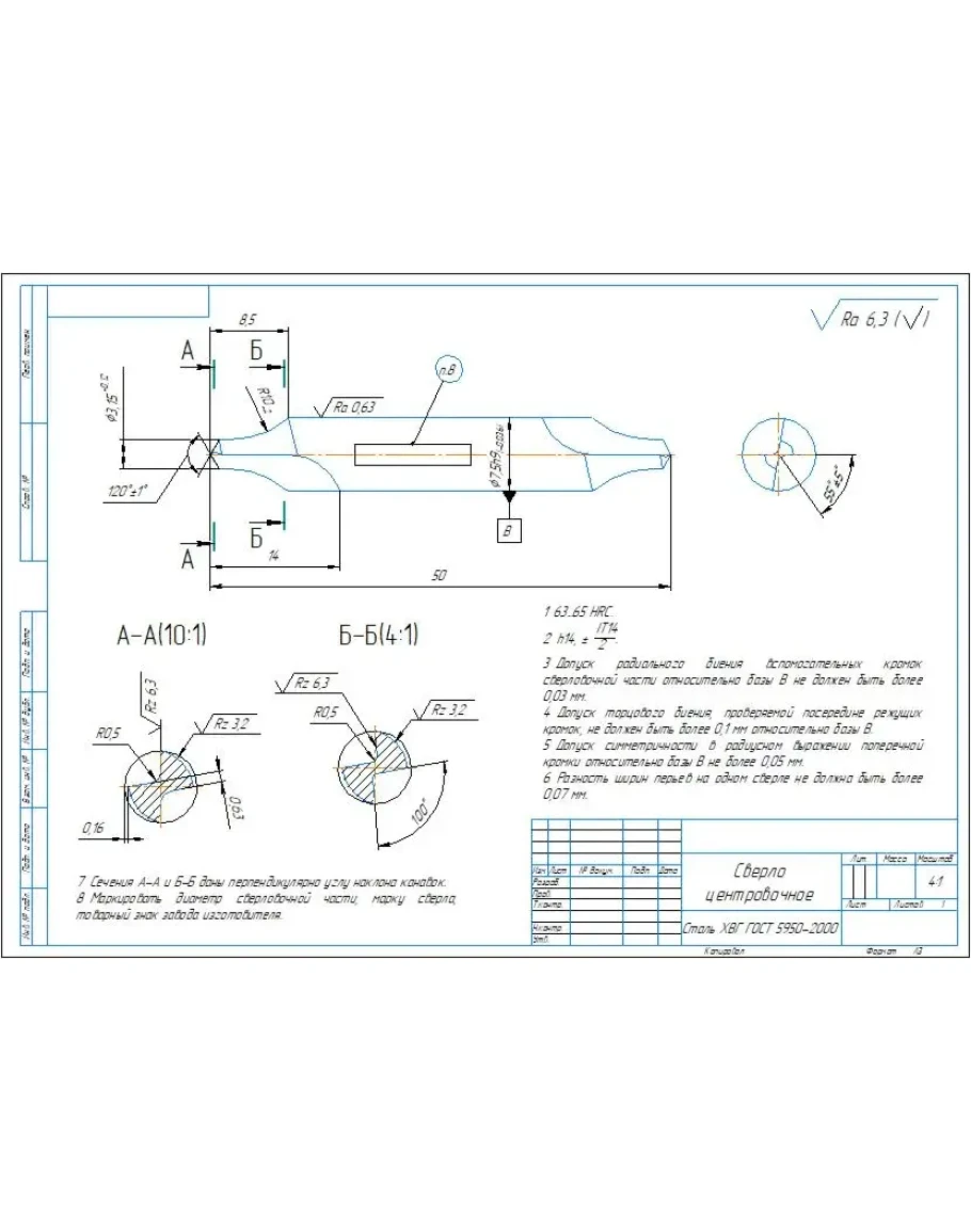 Рабочий чертеж сверла центровочного диаметром 3,15 мм в программе компас