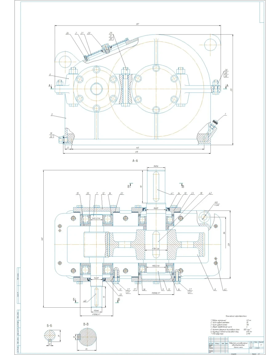 Чертеж цилиндрический редуктор одноступенчатый в компас