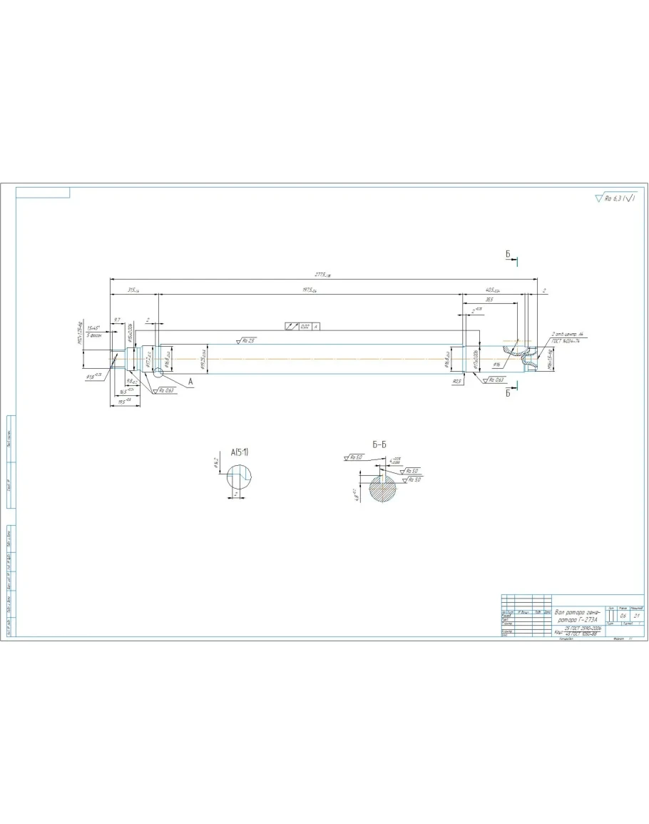 Рабочий чертеж детали вал ротора генератора модели Г-273А в программе Компас 3D