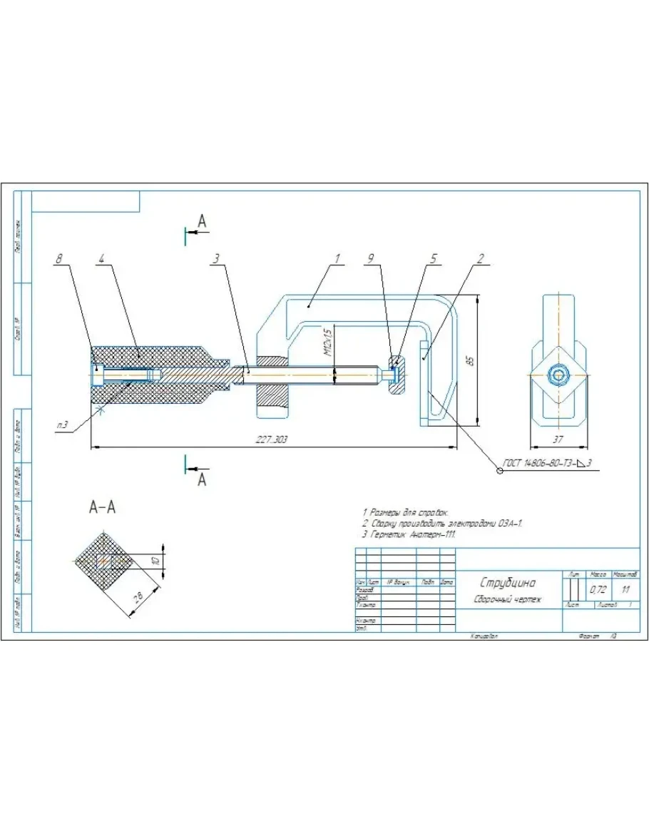 Комплект конструкторской документации на изделие струбцина (чертежи, спецификация, 3D модели)