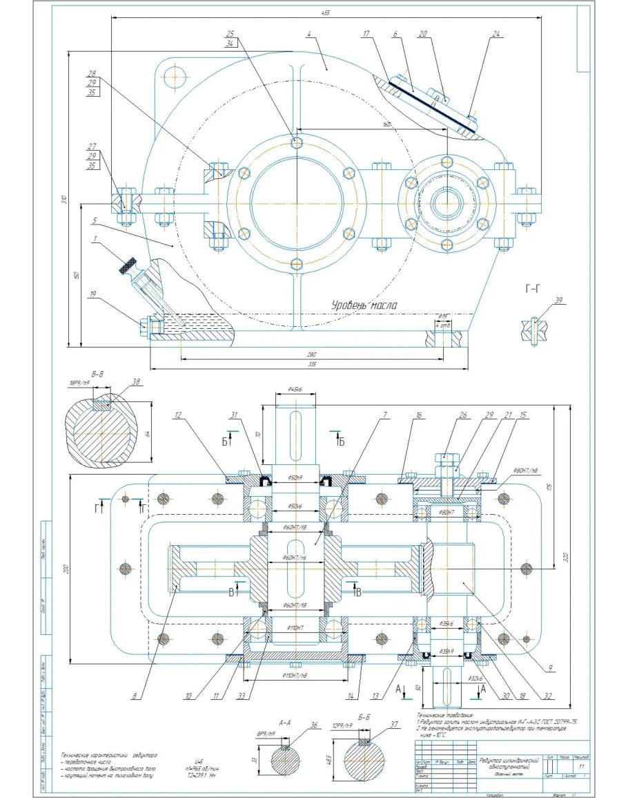 Чертежи редуктор цилиндрический одноступенчатый a160
