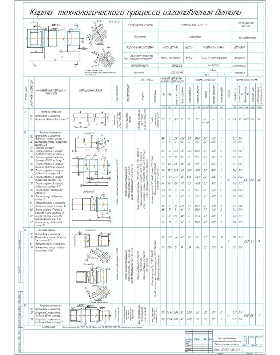 Карта процесса изготовления детали вал гидромотора