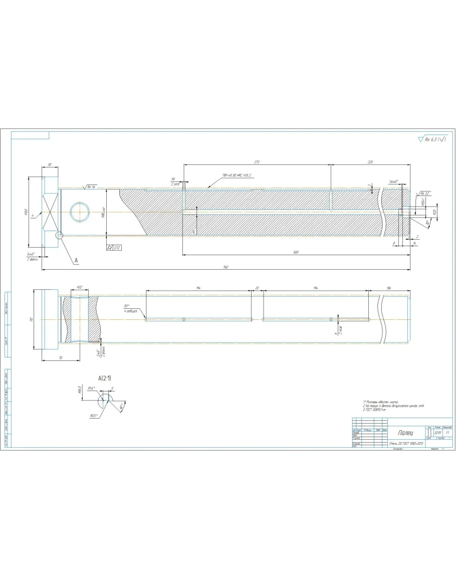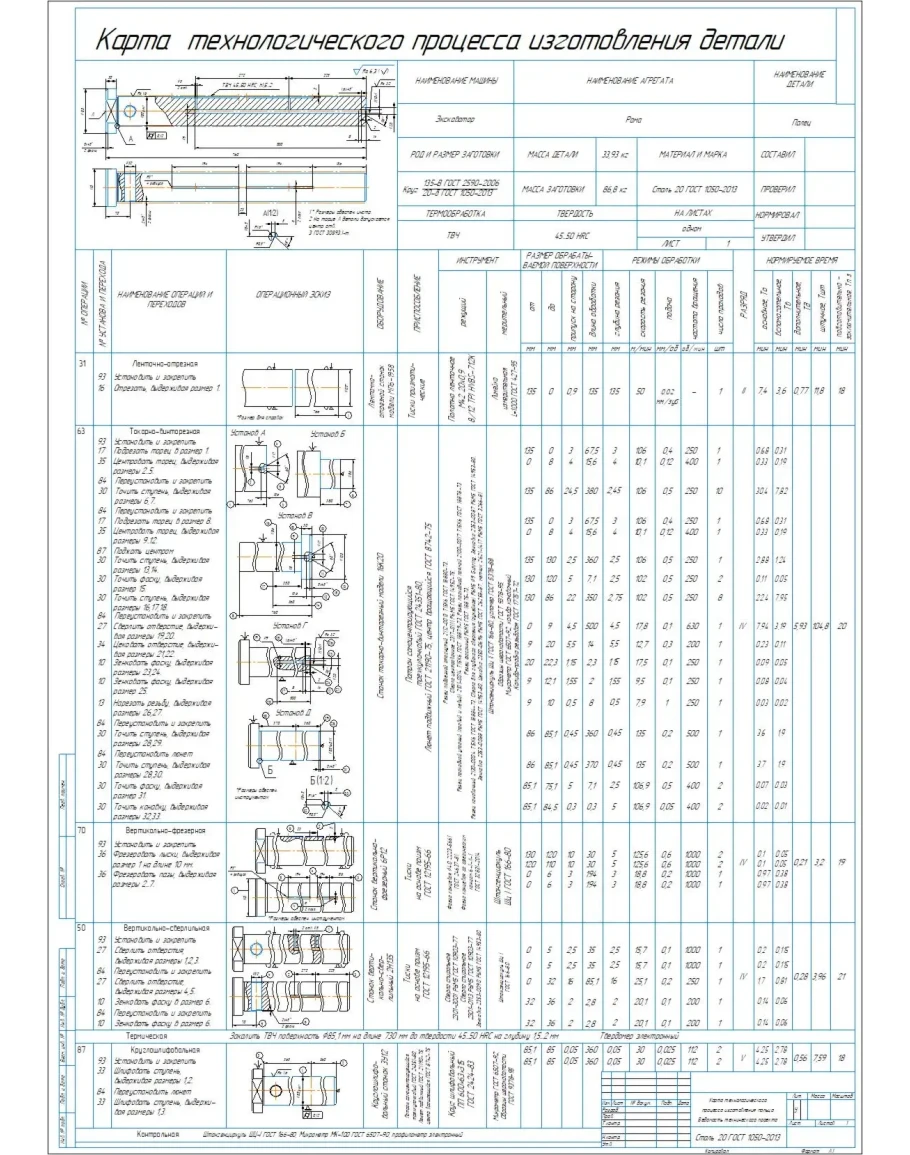Карта технологического процесса изготовления детали палец экскаватора в виде плаката на формате А1. Также приложен рабочий чертеж детали палец. Чертежи выполнены в компасе.