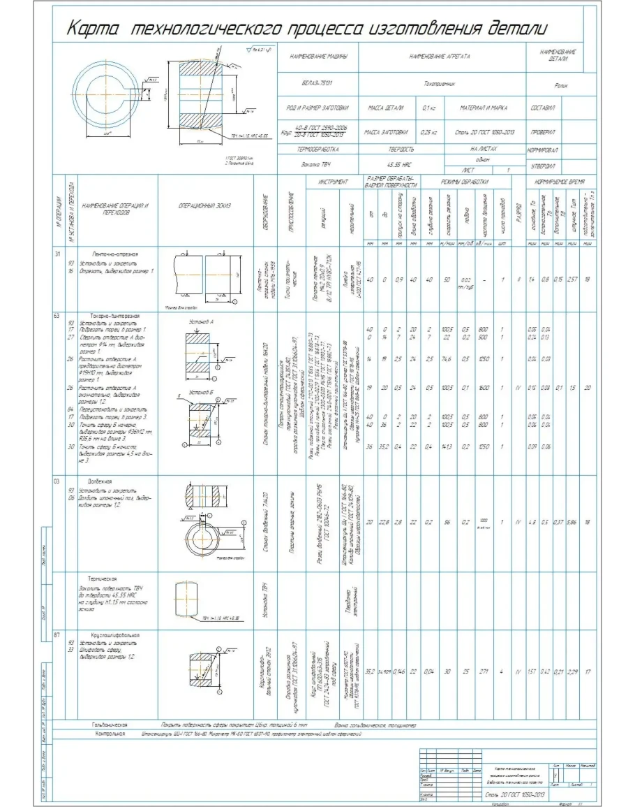 Карта технологического процесса изготовления ролика в виде чертежа на формате А1. Ролик применяется в узле токоприемника автомобиля БелАЗ. Также приложена 3D модель ролика. Чертеж и модель выполнены в программе компас
