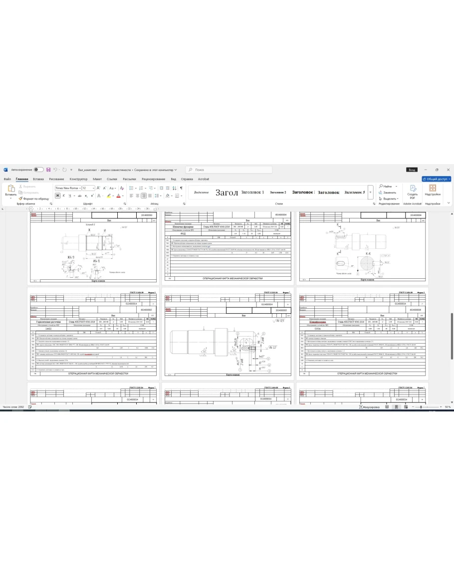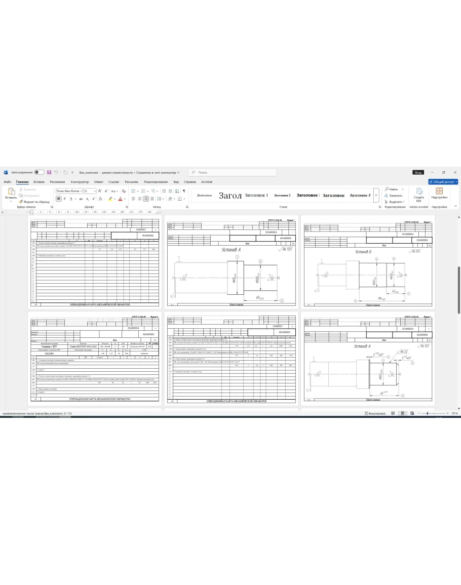 Маршрутные, операционные, карты эскизов на изготовление детали вал в программе Word. Также приложен рабочий чертеж детали вал в компасе