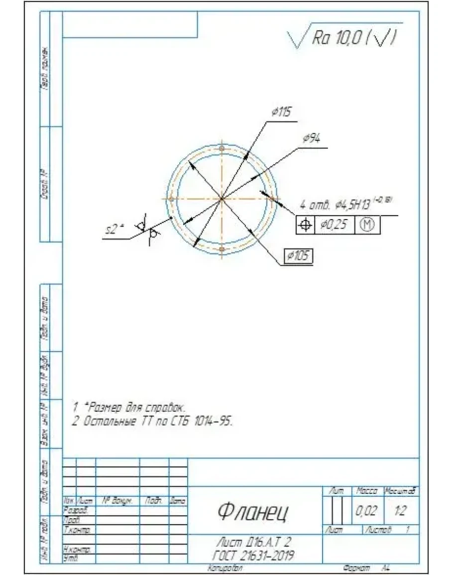 Карты технологического процесса изготовления фланца