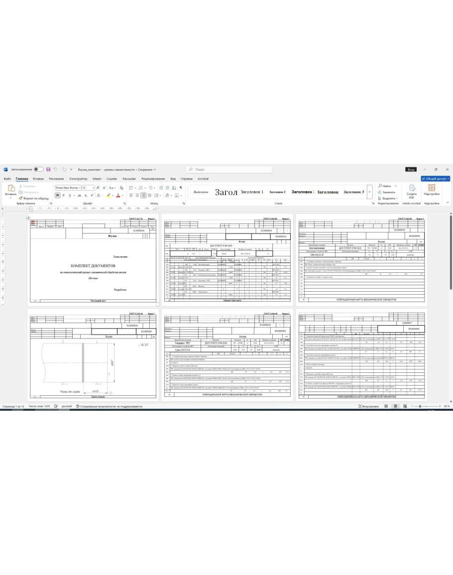 Технологический процесс изготовления детали "Втулка" в виде комплекта карт: маршрутные, операционные, карты эскизов. Карты выполнены в ворд. Также приложен рабочий чертеж и 3д-модель детали в компасе.