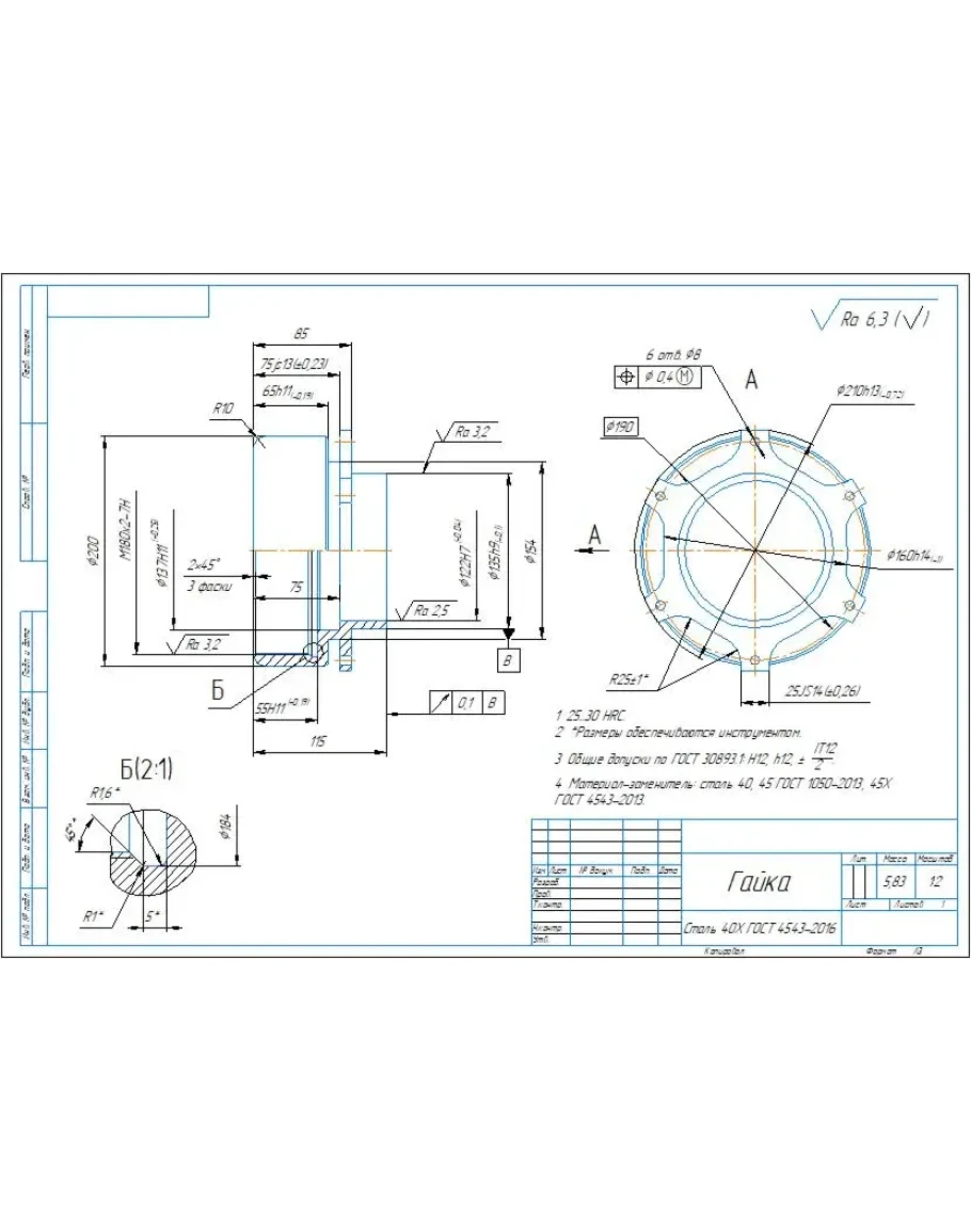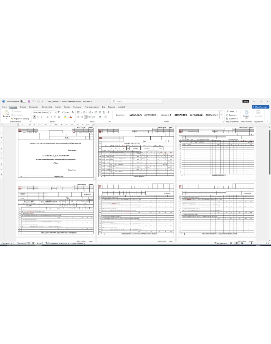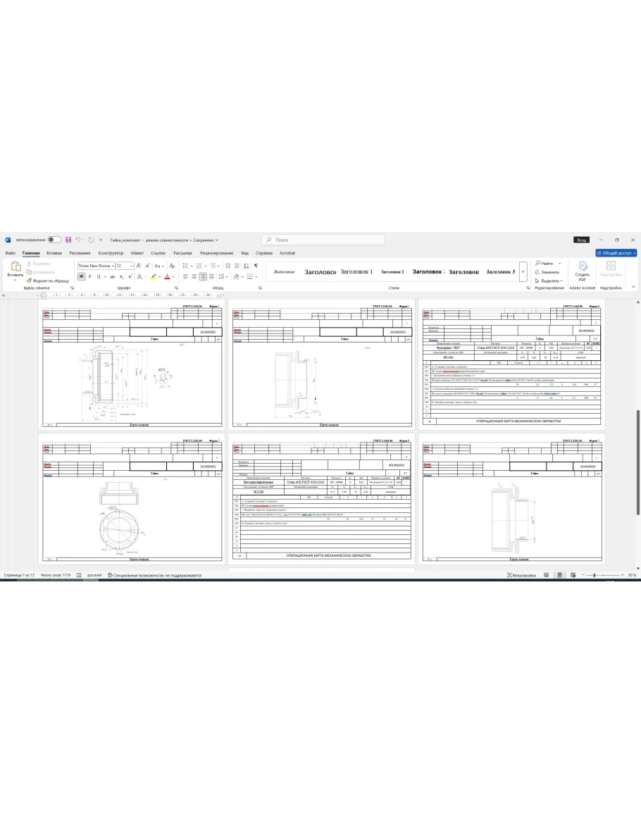 Комплект технологических карт: маршрутные, операционные, карты эскизов на изготовление детали гайка. Карты выполнены в Word. Также приложен рабочий чертеж детали гайка, который выполнен в компасе