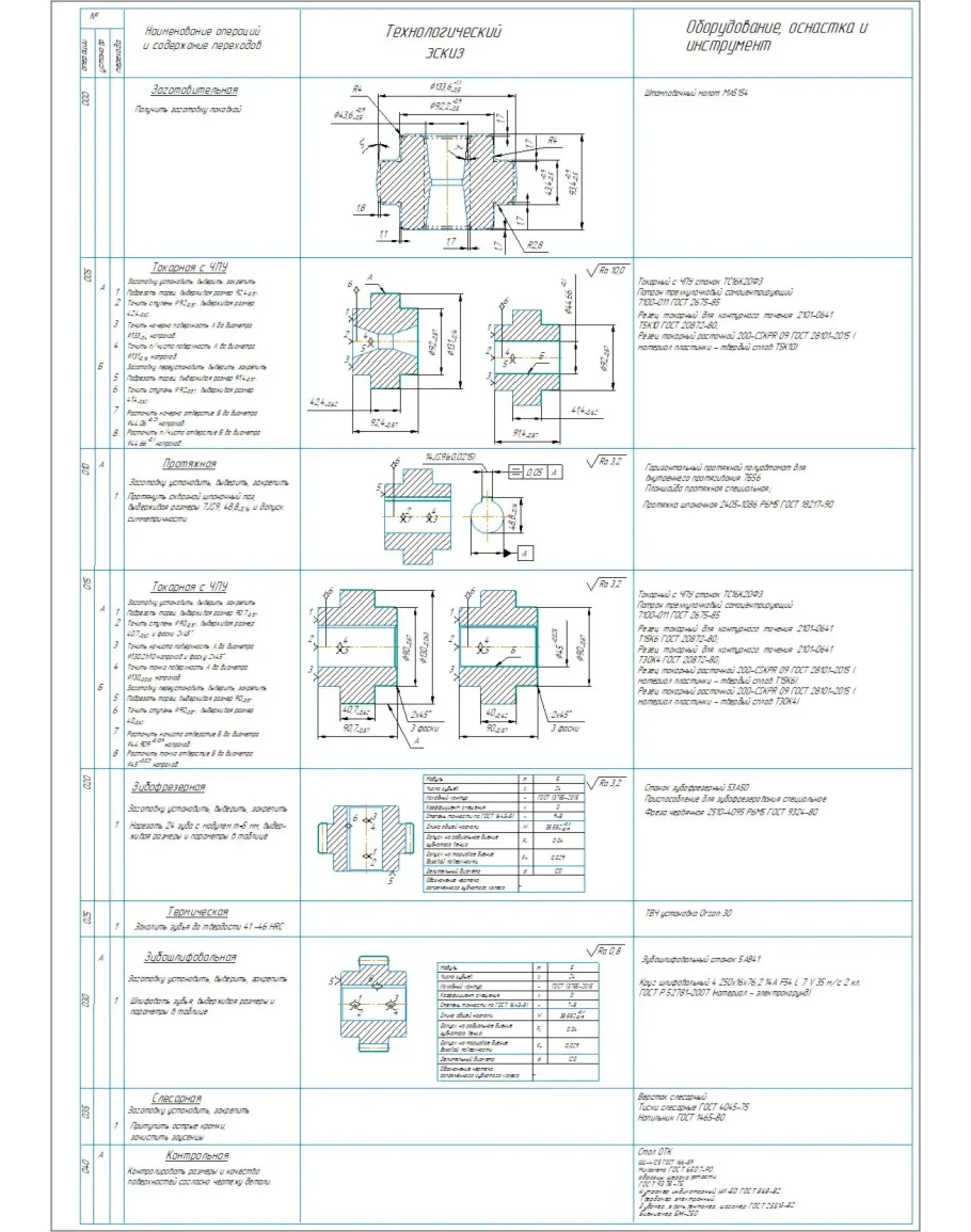 Маршрутная карта обработки детали колесо зубчатое в виде плаката на формате А1 с перечнем операций, операционных эскизов. Также приложен рабочий чертеж детали колесо зубчатое.