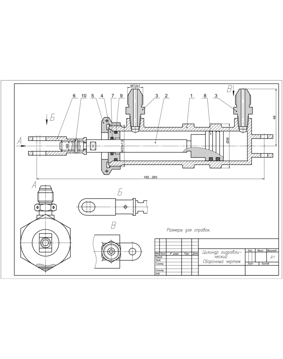 Сборочный чертеж МЧ.06.00.00 цилиндр гидравлический, чертеж детали МЧ.06.00.04 крышка в программе AutoCAD