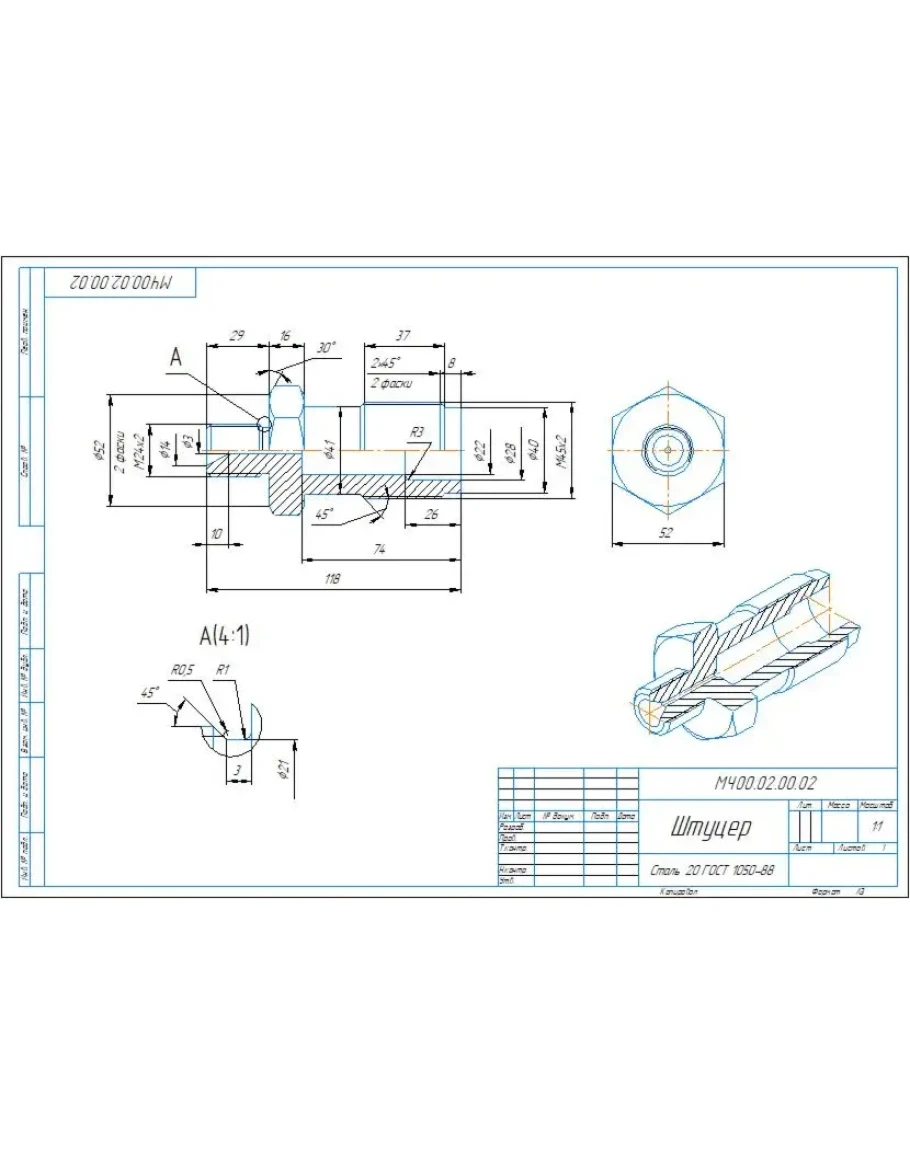 МЧ00.02.00.02 штуцер - чертеж и 3D модель