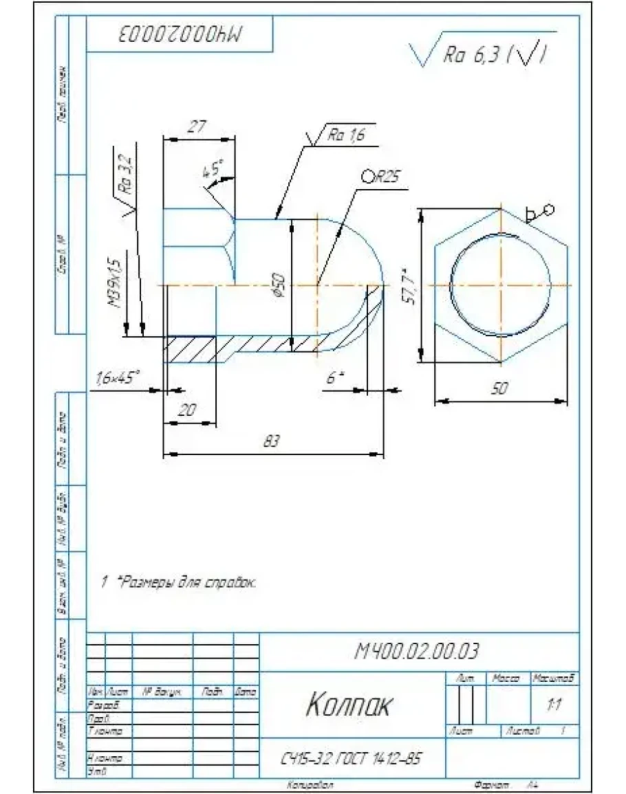 МЧ00.02.00.03 колпак. Рабочий чертеж детали в компасе