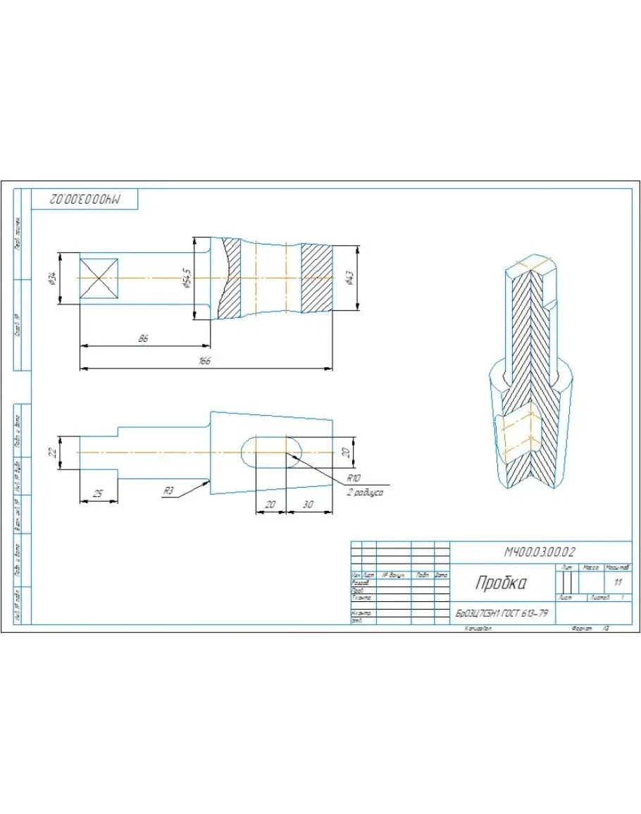 МЧ00.03.00.02 пробка - чертеж и 3D модель детали