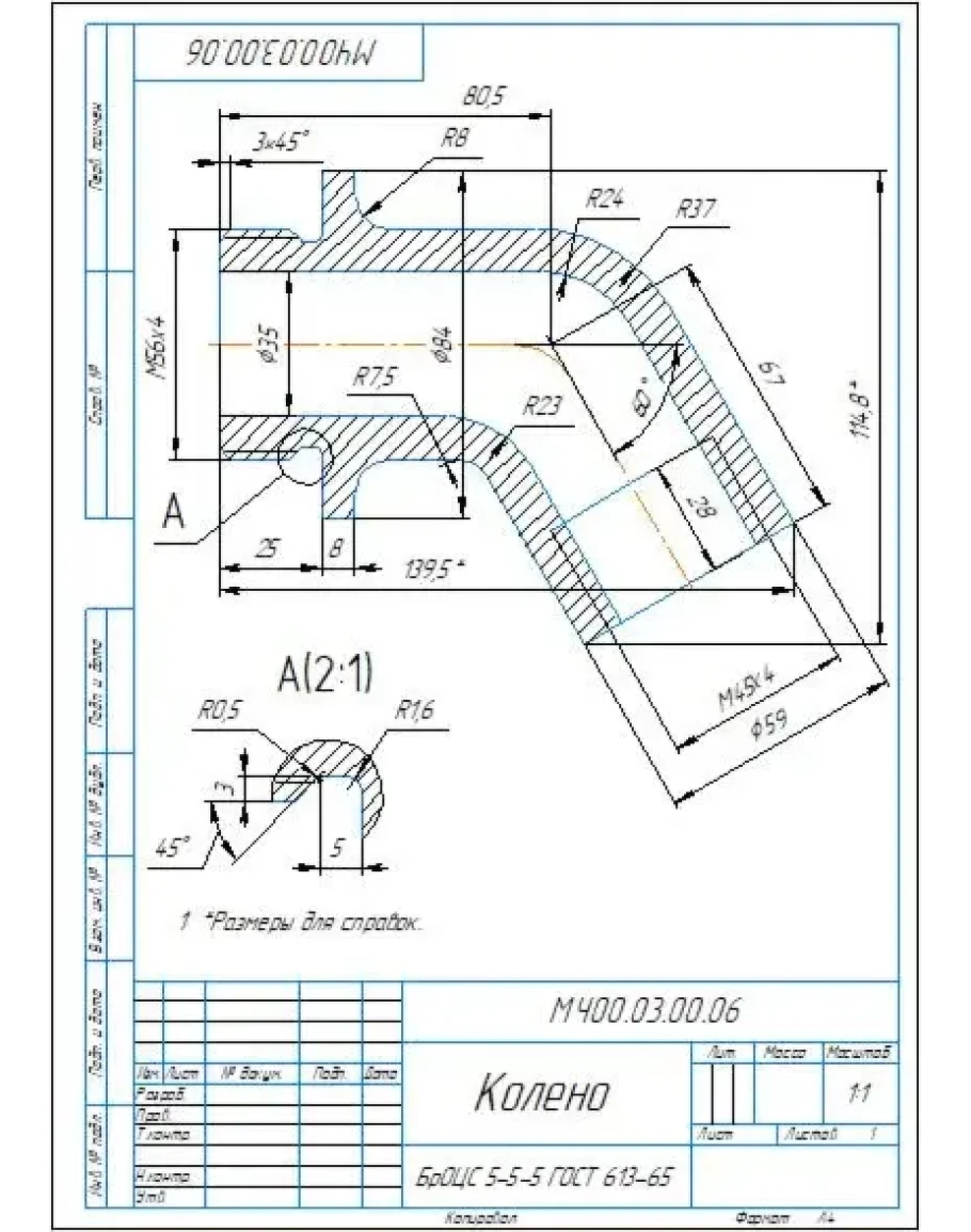 МЧ00.03.00.06 колено - чертеж детали