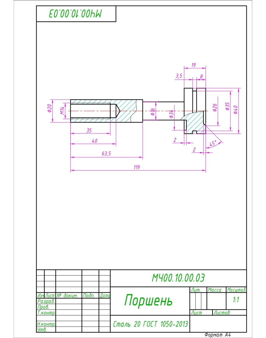 МЧ00.10.00.03 поршень. Рабочий чертеж детали в AutoCAD