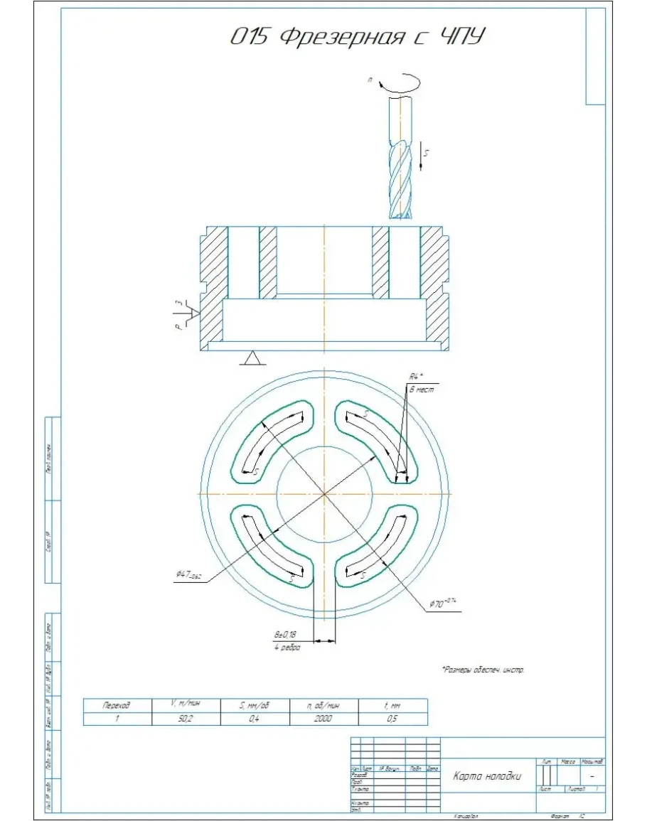 Чертежи наладок технологических: токарная, фрезерная для детали корпус подшипника. Также приложены рабочий чертеж детали и чертеж заготовки. Чертежи выполнены в компасе.