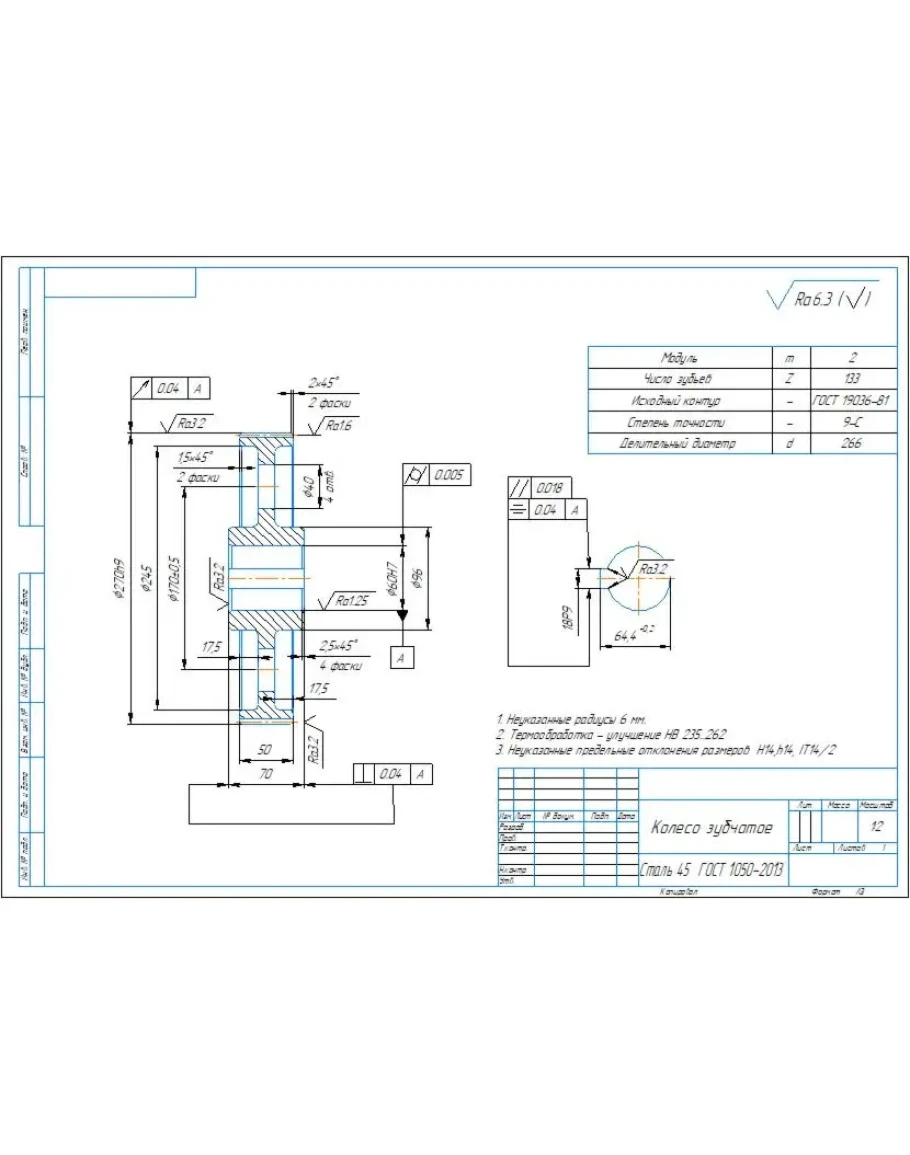 Рабочий чертеж детали колесо зубчатое m2 z133