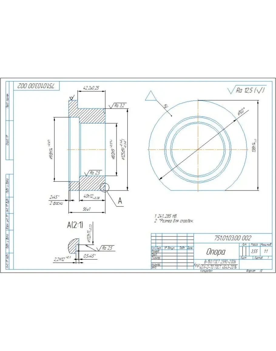 Рабочий чертеж детали "Опора" 751.01.03.00 002 в компас