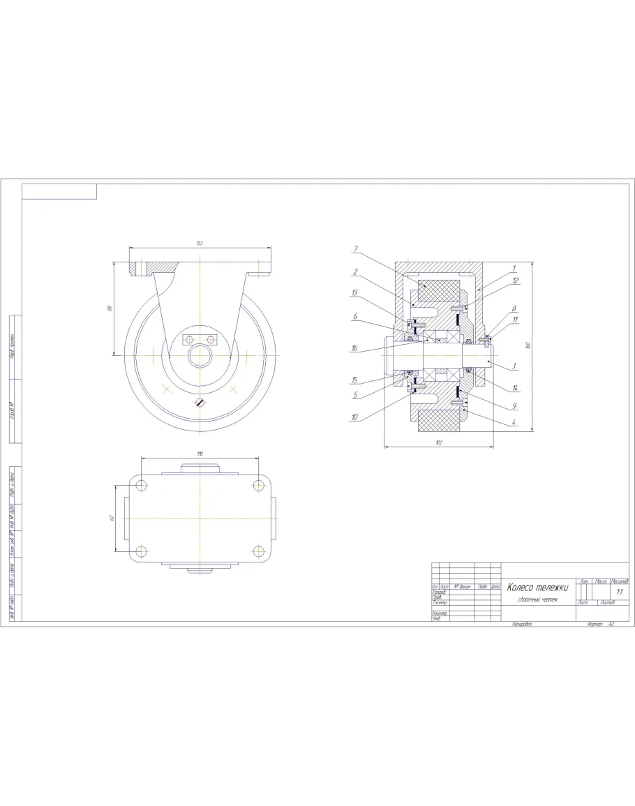 Рабочий чертеж детали ступица колеса тележки в программе Компас 3D