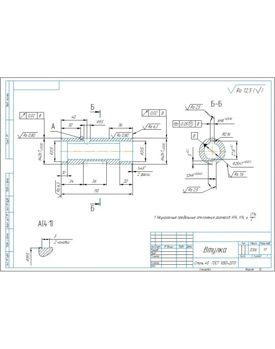 Рабочий чертеж детали втулка в программе компас 3D