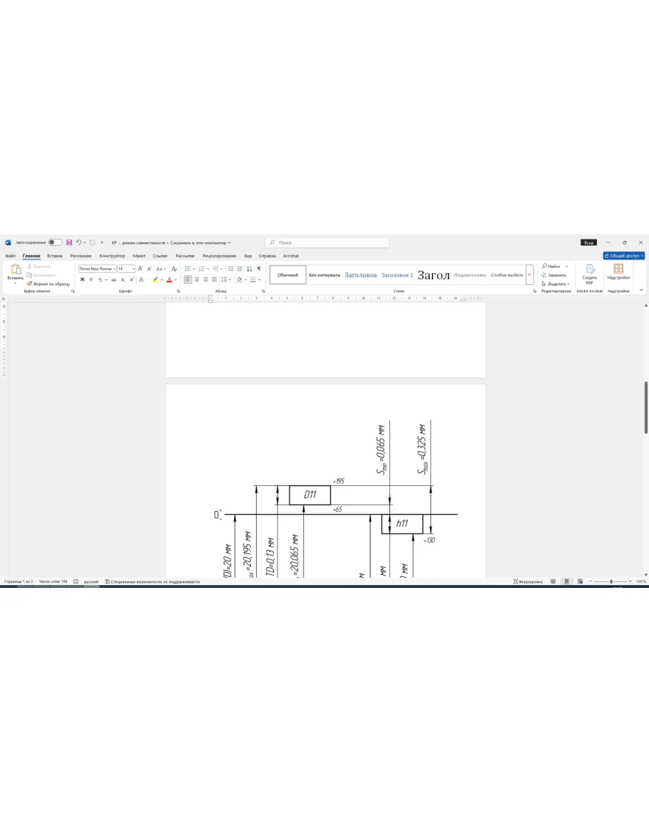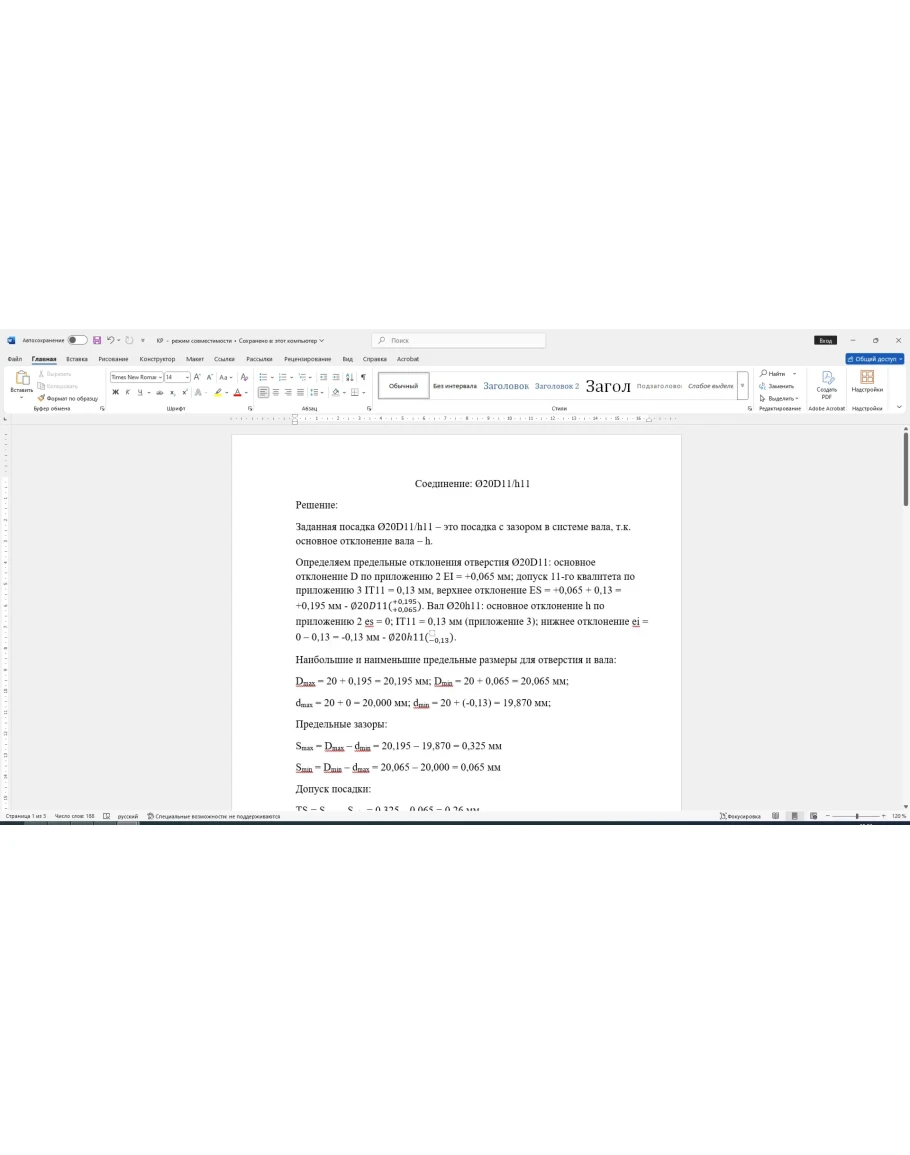 Расчет посадки с зазором 20D11/h11 в Word со схемой