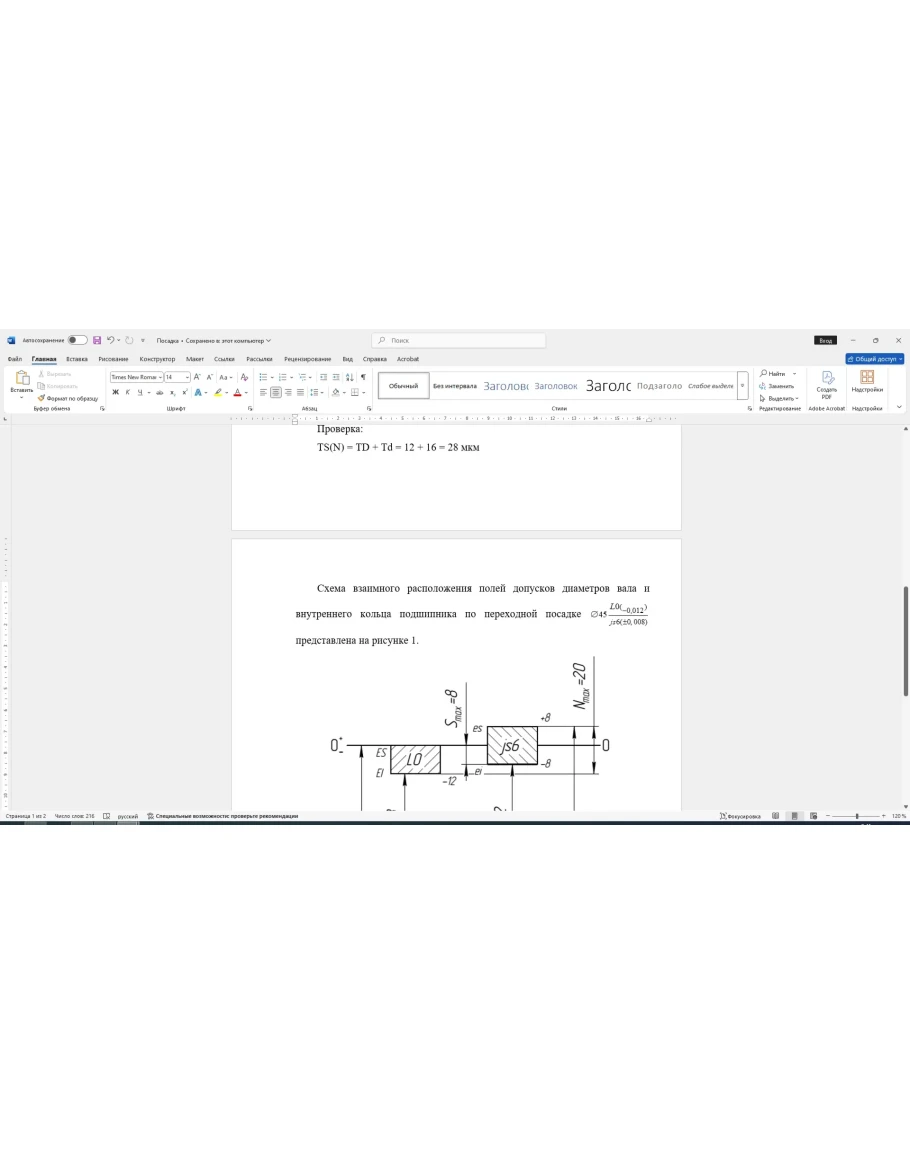 Расчет посадки соединения 45L0/js6 в Word со схемой