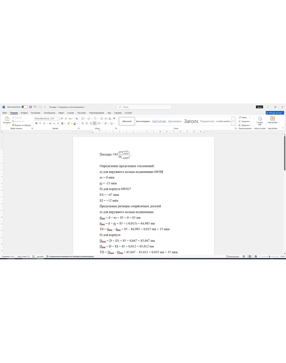 Расчет посадки соединения 85G7/l0 в Word со схемой