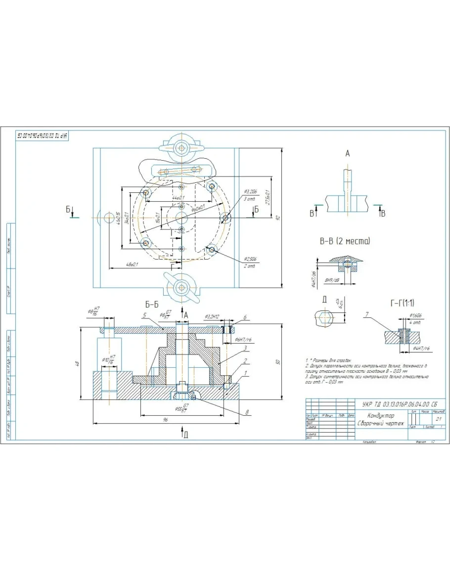 Сборочный чертеж кондуктора сверлильного в программе Компас 3D