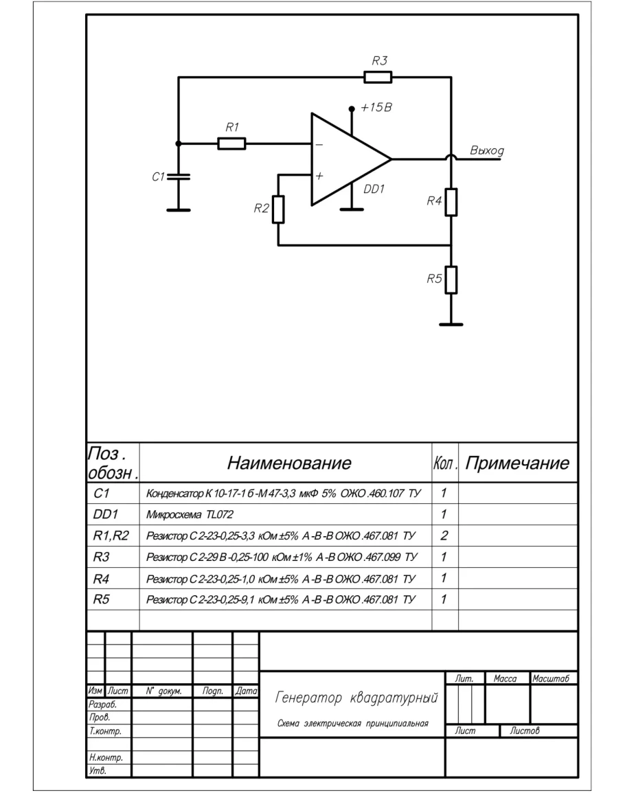 Схема электрическая принципиальная генератора квадратурного в программе AutoCAD