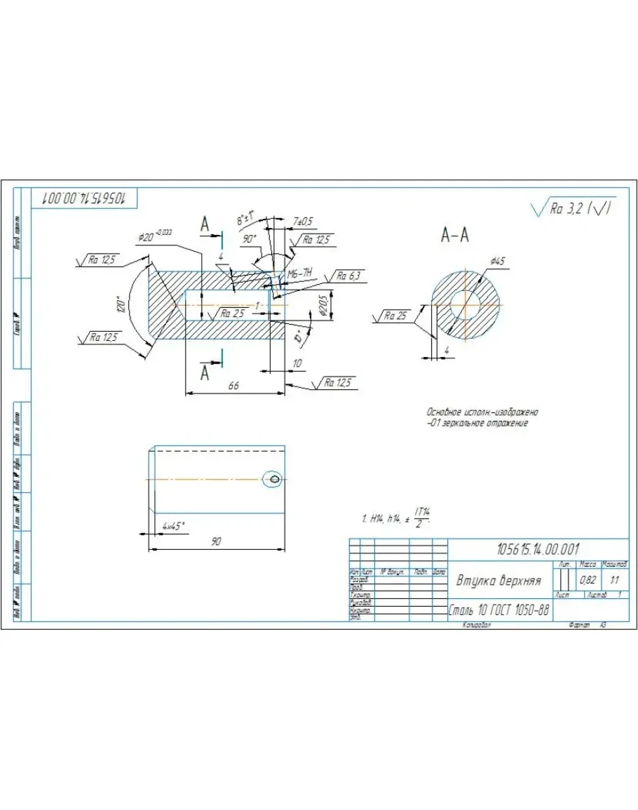 Схема технологического процесса изготовления детали втулка верхняя на формате А1. На схеме указан перечень операций, переходов, оборудование, режущие инструменты, операционные эскизы. Также приложен рабочий чертеж детали втулка верхняя. Чертежи выполнены в компасе.
